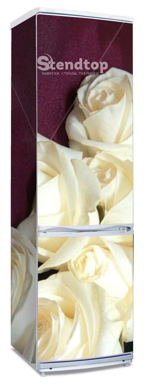 Подарите своему холодильнику новую жизнь. Превратите его в волшебный ларец с помощью виниловых наклеек. Виниловая самоклеющаяся пленка позволяет не только передать любой рисунок, выбранный Вами, но и легко моется, что немаловажно для кухонной мебели.