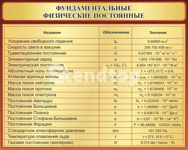 Стенд «Фундаментальные физические постоянные» 1000 х 800мм.