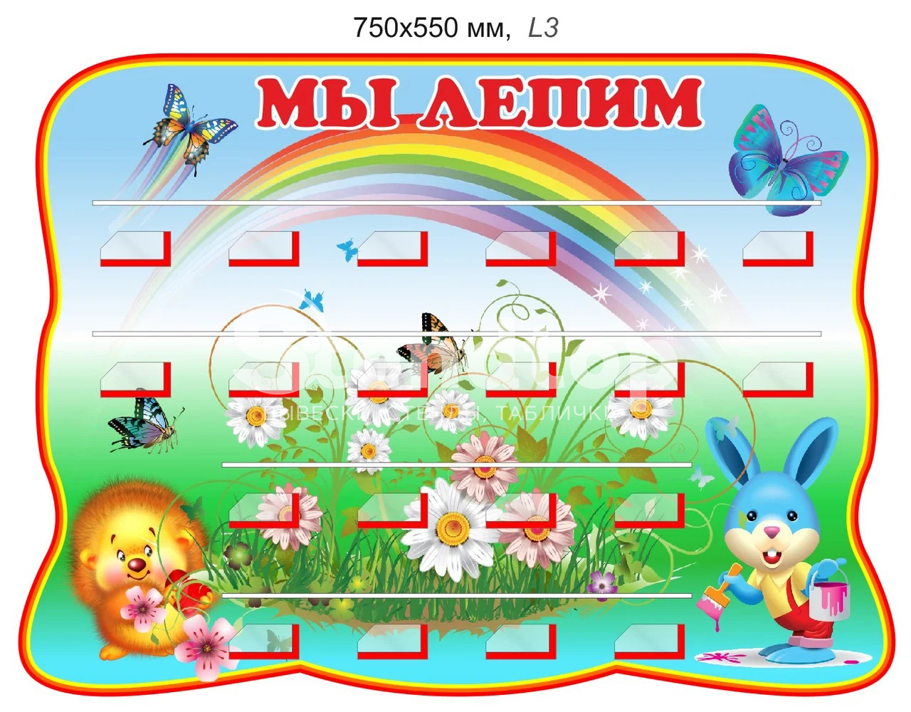 Стенд «Мы лепим» для лепки с 20 полочками 750х550 мм