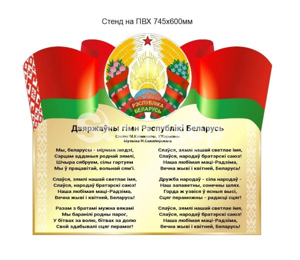 Стенд с Символикой и гимном Республики Беларусь 745х600 мм на ПВХ 3мм