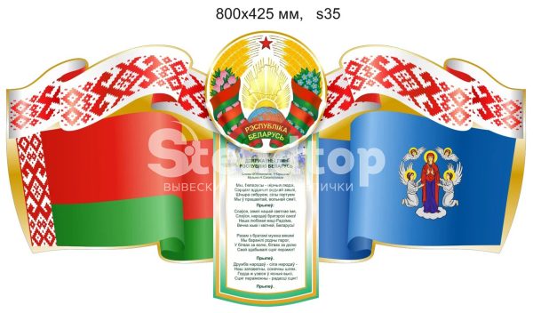 Стенд с символикой, гимном, флагом и гербом Республики Беларусь и города Минска (800 х 425мм).