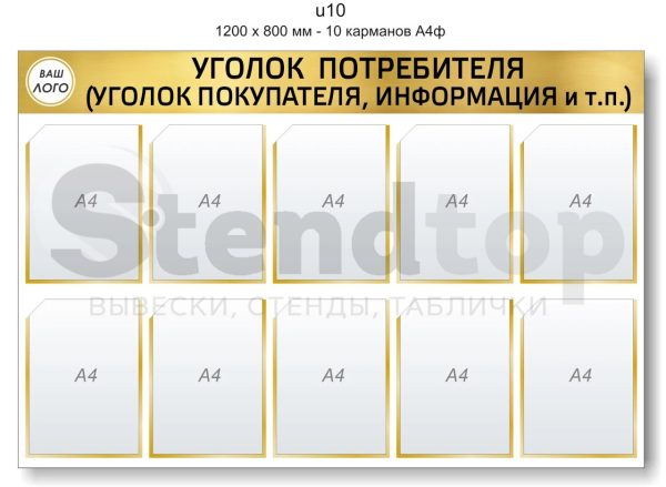 Уголок потребителя (покупателя) 1200 х 800 мм — 10 карманов А4